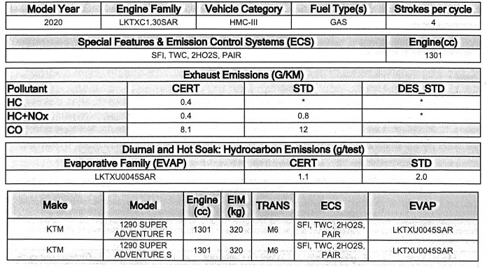 By the way, although it is 1290 Super Adventure of CARB’s 2020 model submitted in June 2019, the value of exhaust gas is the same as the 2019 model.Â