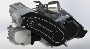 Our team has developed a compact and powerful mechanical device for motorcycles. The device, based on a belt-driven air compressor (supercharger), improves the performance of most common 50cc – 125cc four-stroke single-cylinder engine.
