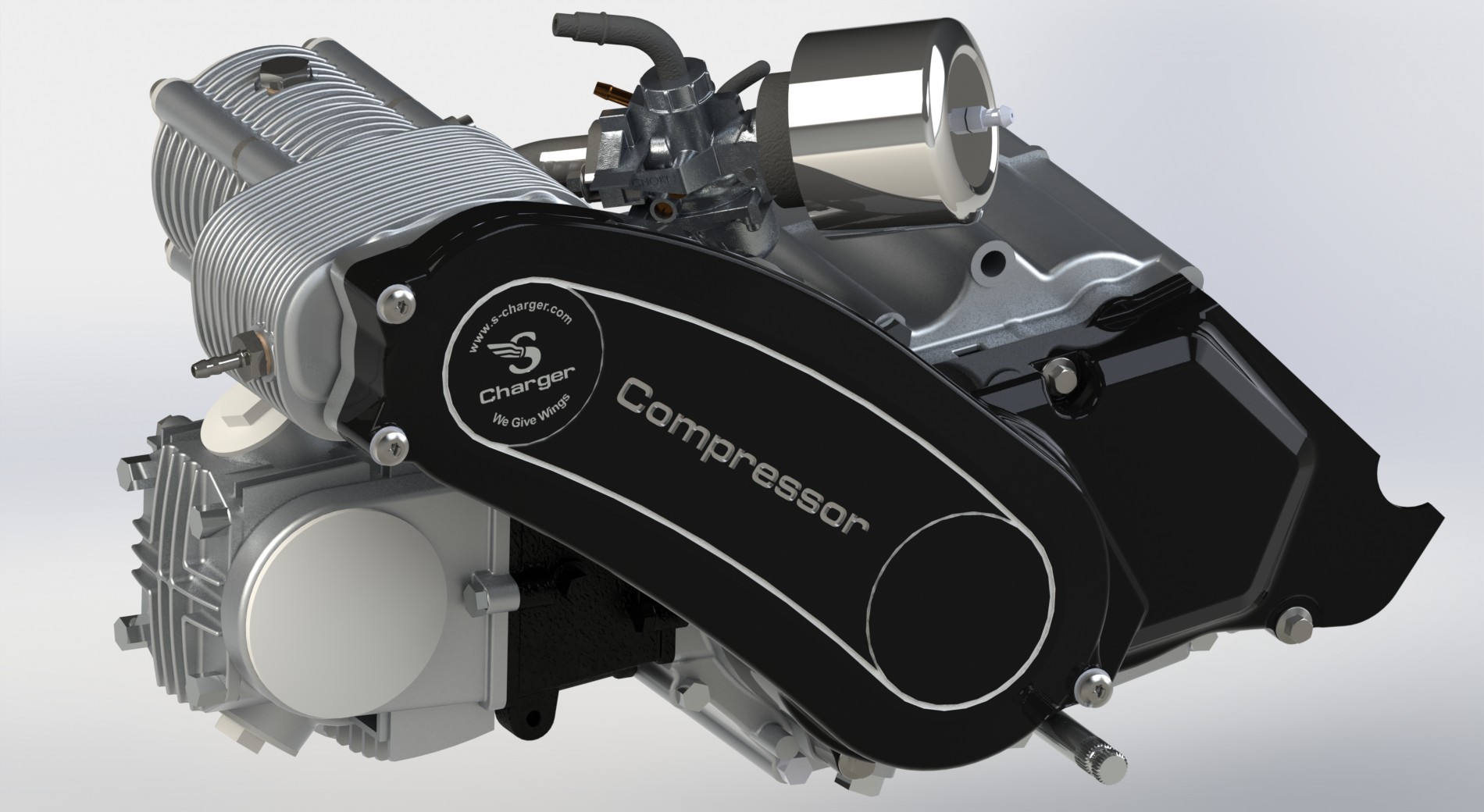 The newly developed supercharging system for a 50cc – 125cc engine provides more than a 50% increase in power. Mass production of this supercharger guarantees affordable price of the supercharger and plug-and-play installation kit.