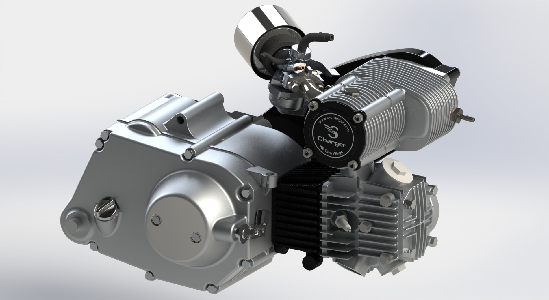 Our team has developed a compact and powerful mechanical device for motorcycles. The device, based on a belt-driven air compressor (supercharger), improves the performance of most common 50cc – 125cc four-stroke single-cylinder engine.