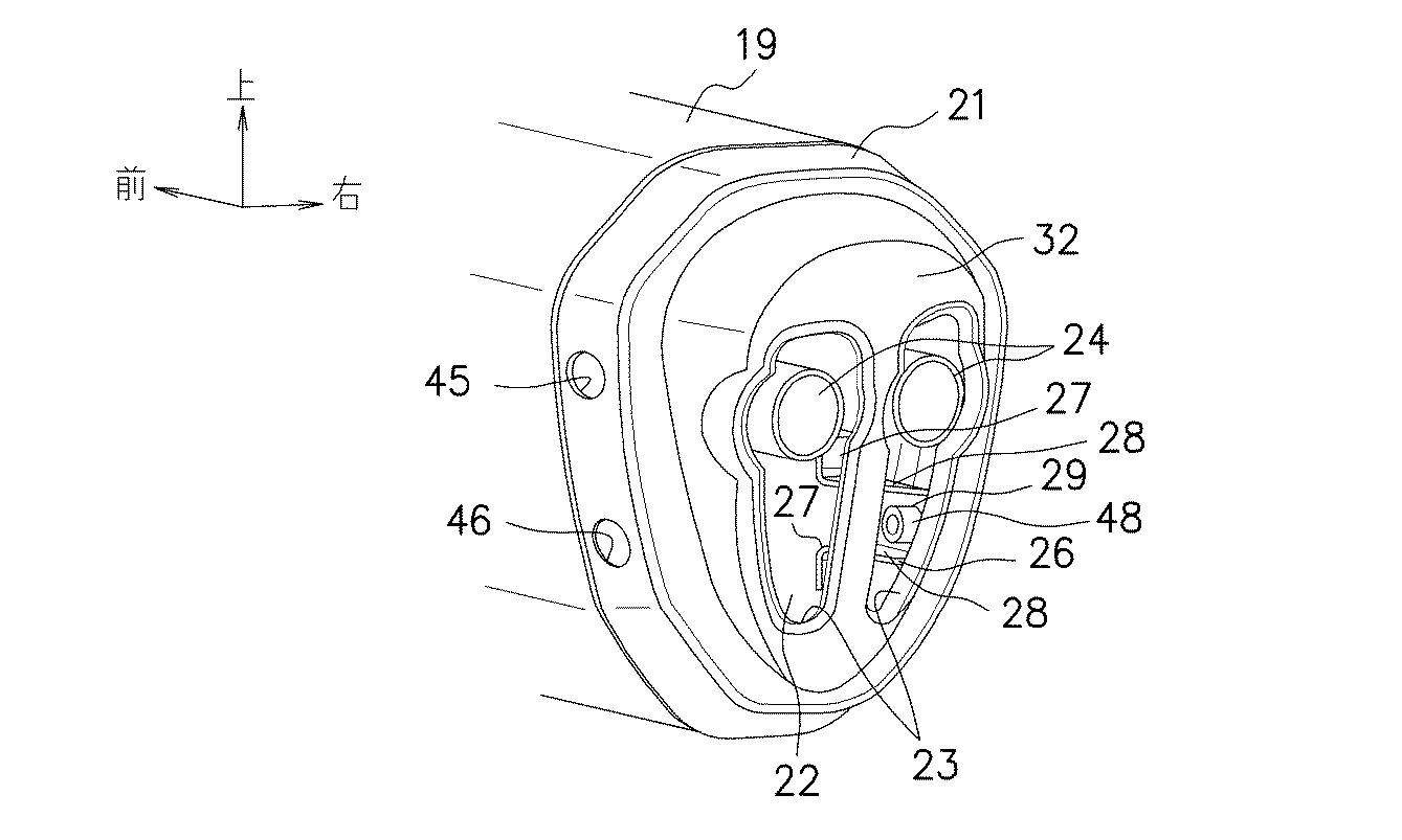 A first hole 45 and a second hole 46 corresponding to the first fastening portion and the second fastening portion are provided on the inner surface in the vehicle width direction. “