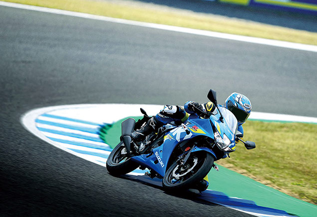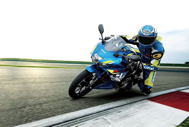 - GSXR-125 comes with short-stroke, water-cooled single-cylinder DOHC 4-valve engine. Fuel injection is a dual spray four-hole sprayer using six sensors. It’s a six-speed transmission.