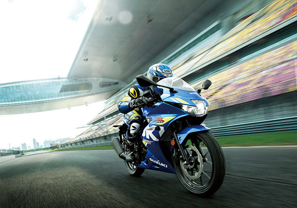- GSXR-125 comes with short-stroke, water-cooled single-cylinder DOHC 4-valve engine. Fuel injection is a dual spray four-hole sprayer using six sensors. It’s a six-speed transmission.