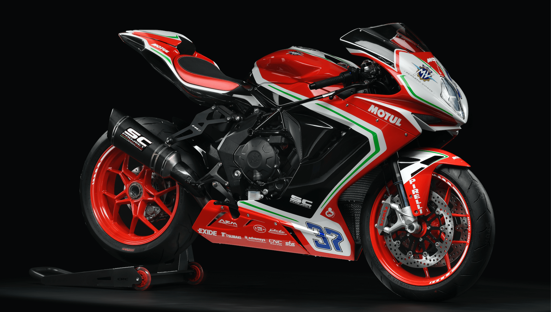4.2019 M V Agusta F4 RC Motul : F4 RC legendary project is at its evolutionary peak. Included with the F4 RC is a dedicated racing kit, including an electronic control unit with specific mapping and a titanium SC-Project single exit exhaust. These components allow the maximum power of the short-stroke four-cylinder engine to be increased (bore 79 mm – stroke 50.9 mm) with central timing chain and radial valve configuration from 205 hp to 212 hp. The technical features, which include Öhlins fork and shock absorber as well as advanced engine and vehicle management software, make the F4 RC bike the closest version to the one which raced in the World Superbike Championship. The motul version is priced at $46,898 USD.