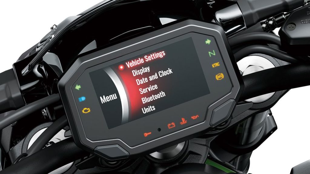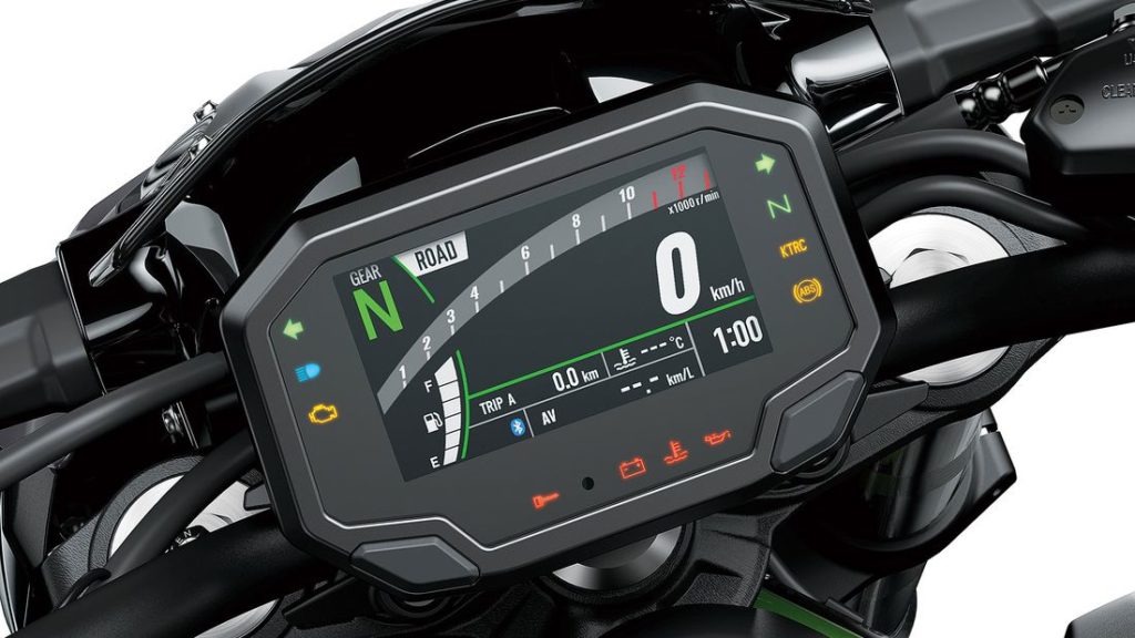 - The new Z900 gets the 10.9 cm TFT color display that can connect with smartphones and USB under the rider’s seat.