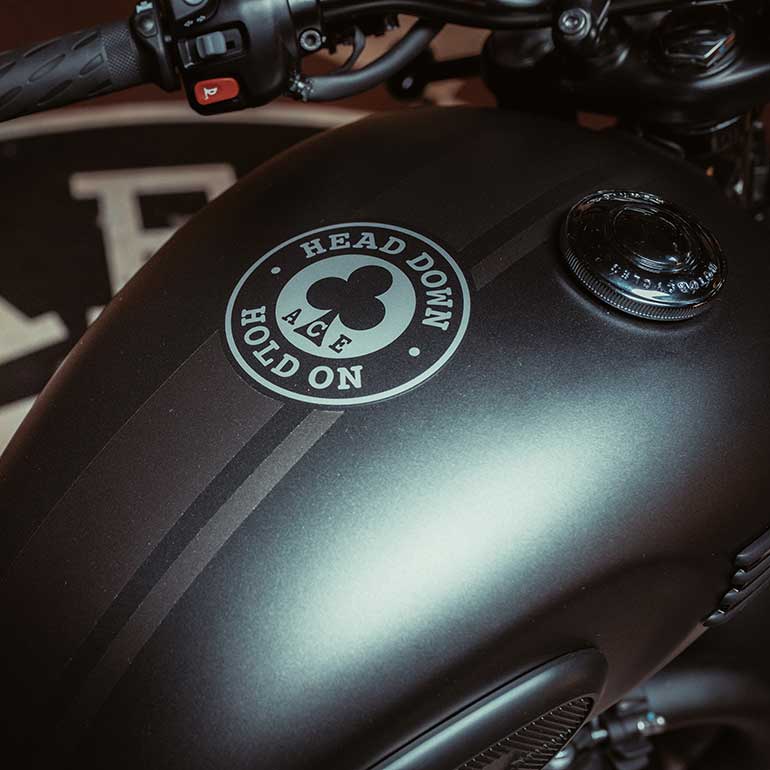 - Ace will have black bench seat, exclusive Ace logo on its front mudguard and side panel and exclusive ‘Head Down – Hold On’ tank detailing.