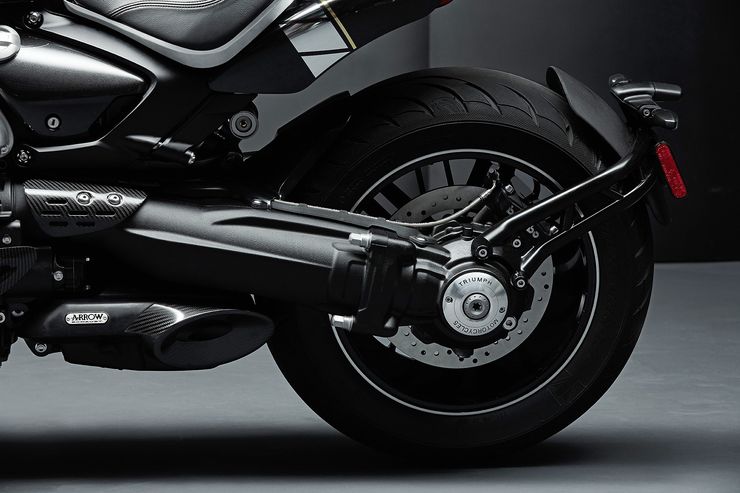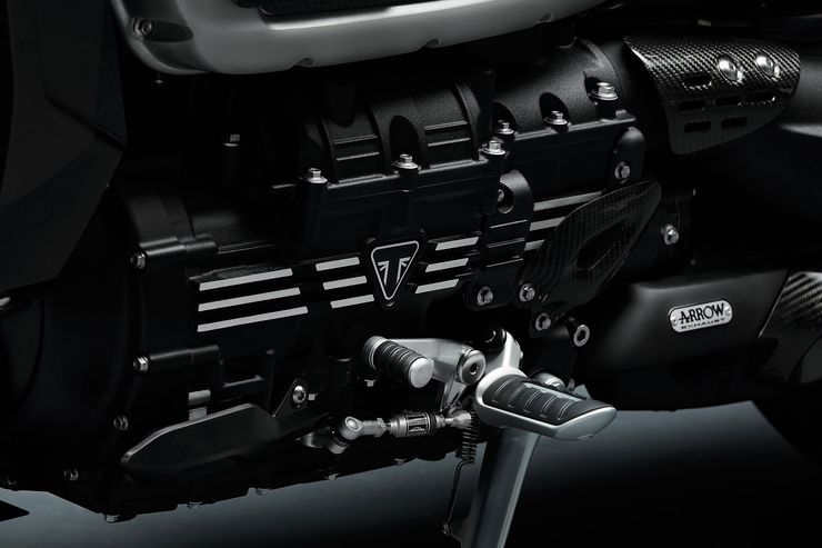 It gets the Arrow 3-in-1-in-3 stainless steel exhaust system that allows the new Triumph Rocket to emit the smoke.The 3-in-1-in-3 exhaust is also put on the Rocket in a way where in two openings are on the right side and one on the left.