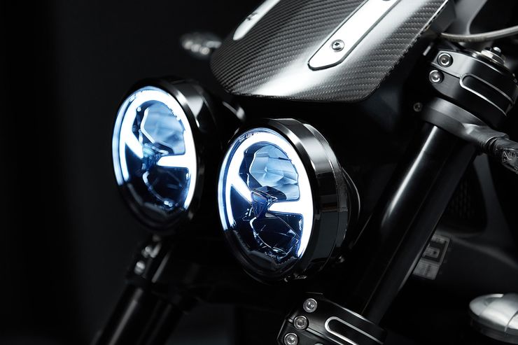 LED is the acronym that Triumph has completely utilized whether its headlights or tail.The new Rocket comes with  full-daytime running light, LEDs are also used in the signals,  and license plate illumination Also the new carbon fiber parts are soothing to eyes. Muffler Caps, instrument display, heel guard, tank Strap and Front fenders are all carbon fiber made.