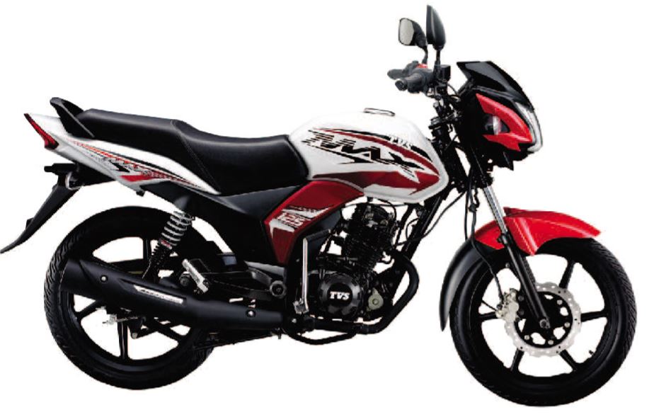 TVS Max 125 is a stylish motorcycle boasting of a 4-stroke engine with a 123.53cc displacement. The motorcycle has a power 8.1kw@8000rpm and a torque of 10.8Nm@5500rpm. Equipped with front disc brake, TVS Max 125 comes with telescopic front and series spring rear suspension.