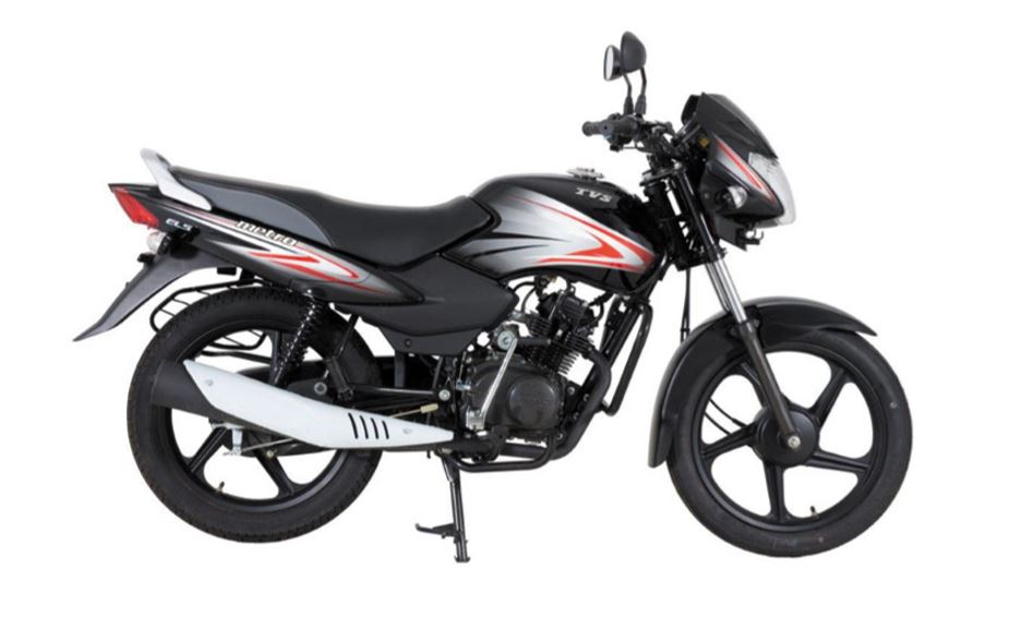 TVS Metro series has always been associated with superior mileage. The Econometer feature allows the rider to ride in Economy mode (Green) for the best mileage and Power Mode (Yellow) for the best power. The motorcycle comes with a 4-stroke DURALIFE engine with maximum power of 5.5kw@7500 rpm and maximum torque of 7.5 PS @ 7500 rpm. It is available in colour selection of Black Red and Black Blue.