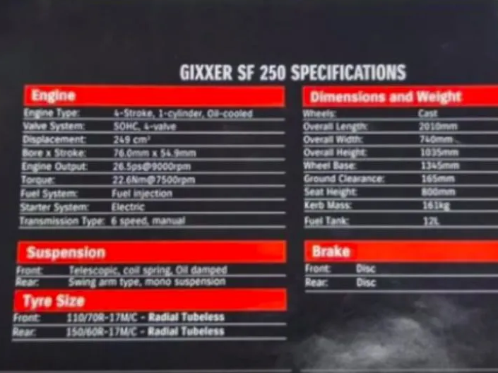 Ahead of Gixxer’s launch that is scheduled on 20th May the tech specs are leaked.I have been publishing articles right from Suzuki filing its patent for its upcoming Gixxer 250.The bike is fully fared with carved fuel tank that has capacity to hold 12 liters of fuel for long hauls.