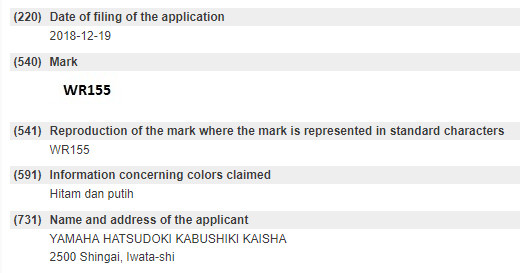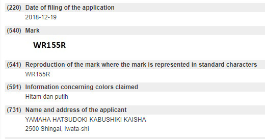 This trademark was filed in December 2018. We could see that there are no other applications in other countries. For WR155R, only Indonesia is currently available.Â