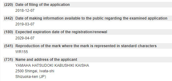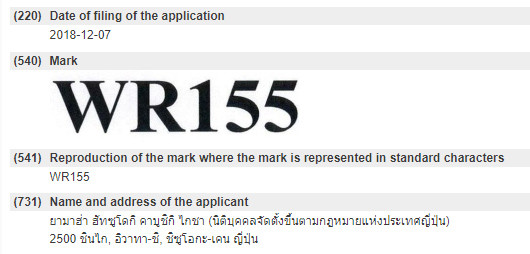 Below are trademark registration details.WR155 and WR155R in Indonesia, WR155R in Philippines and Thailand, WR155 was registered as a trademark.