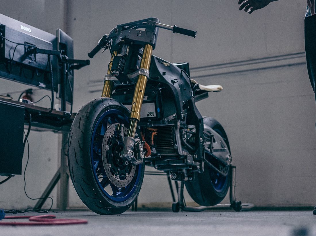 This concept motorcycle is helped with electric motor.