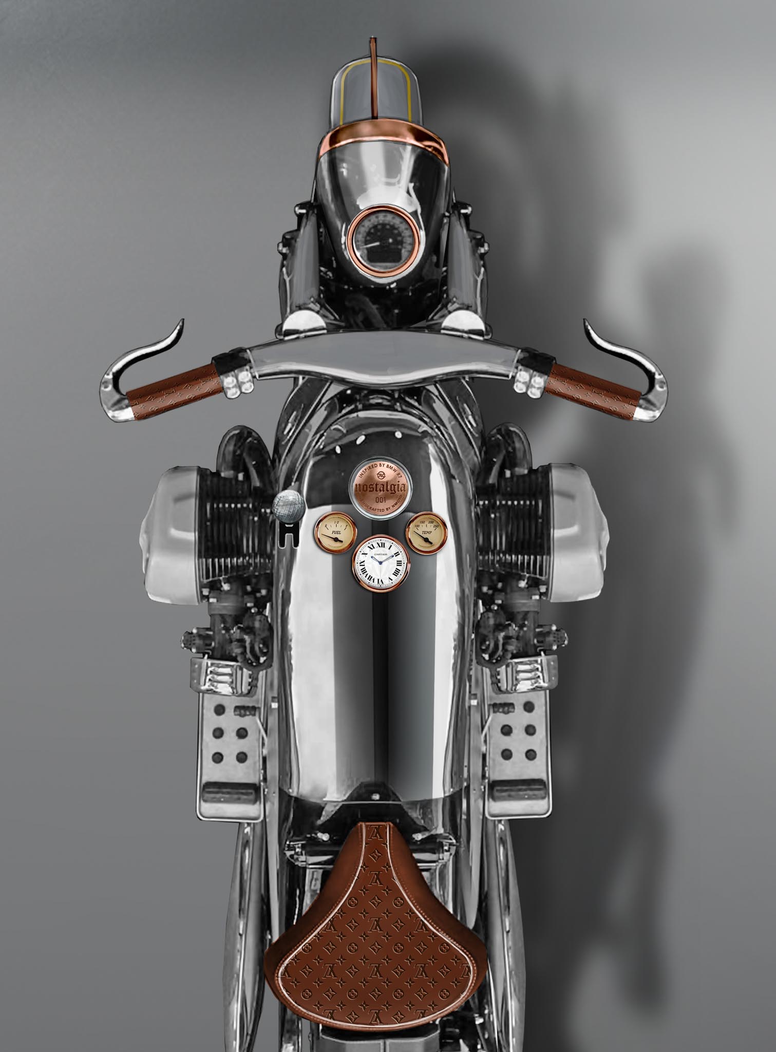 Other high-end requests were Louis Vuitton leather on the seat and Cartier timepiece on the fuel tank. What more, there is also the presence of the electric starter with the availability of the kick starter.
