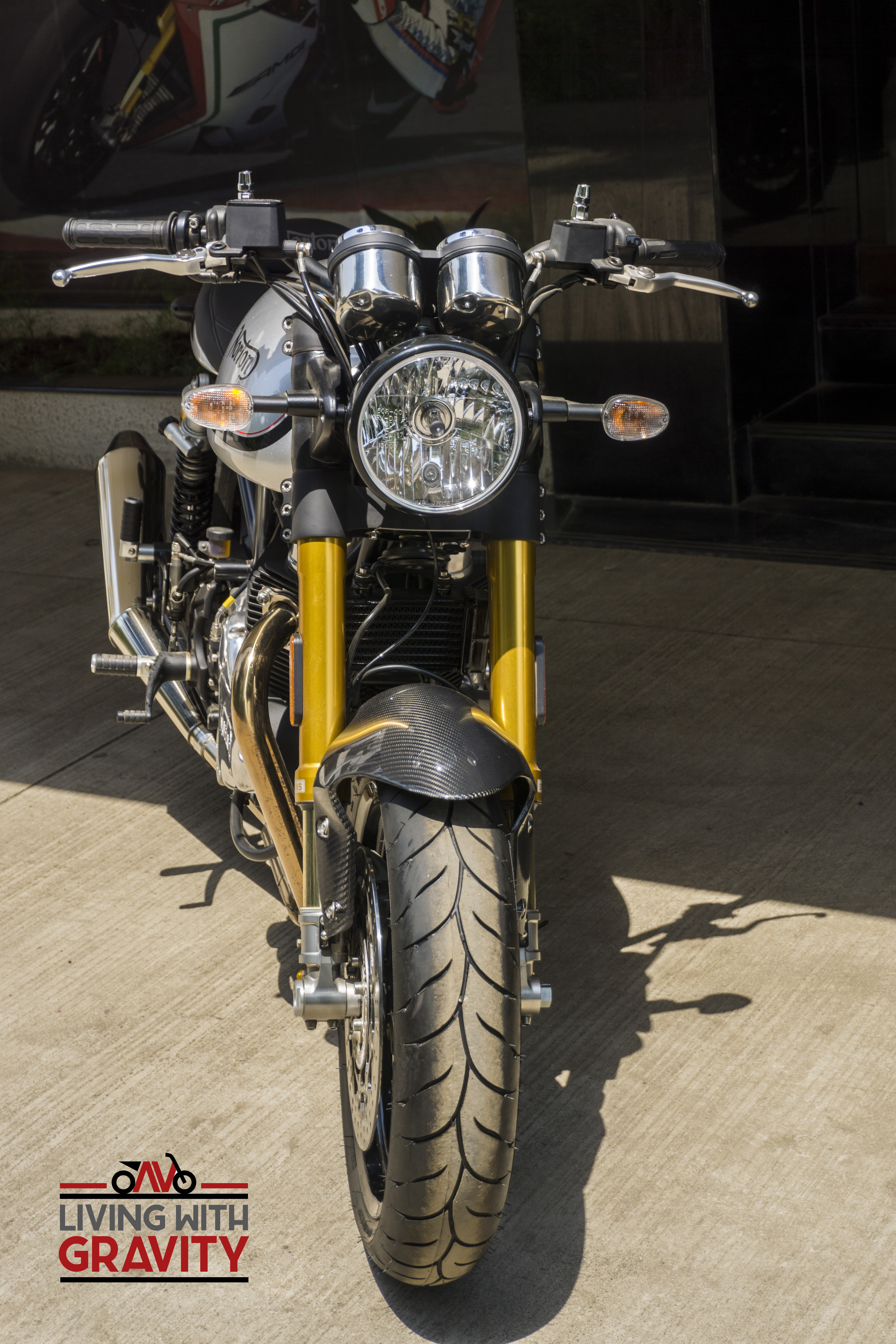 The premium cafe racer gets clip on handlebars, rear cowl, front fly-screen and iconic round headlight as standard equipment. Selected parts are crafted from carbon . Specs of engine is 961cc, fuel injected unit that churns out 80 HP at 6500 rpm and 90 Nm at 5200 rpm.