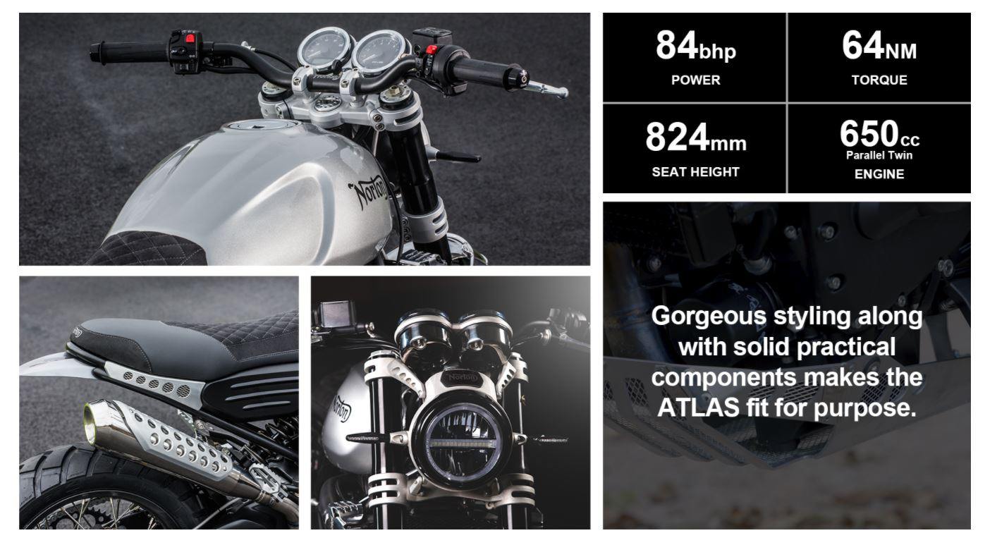 The Atlas engines are the 650cc, parallel-twin motor displacement from Norton capable of producing the 84bhp power and 64Nm torque and has 824mm seat height.