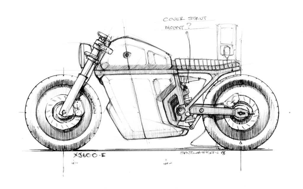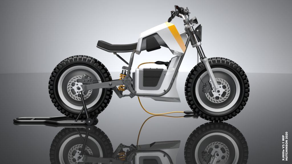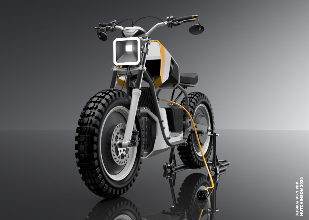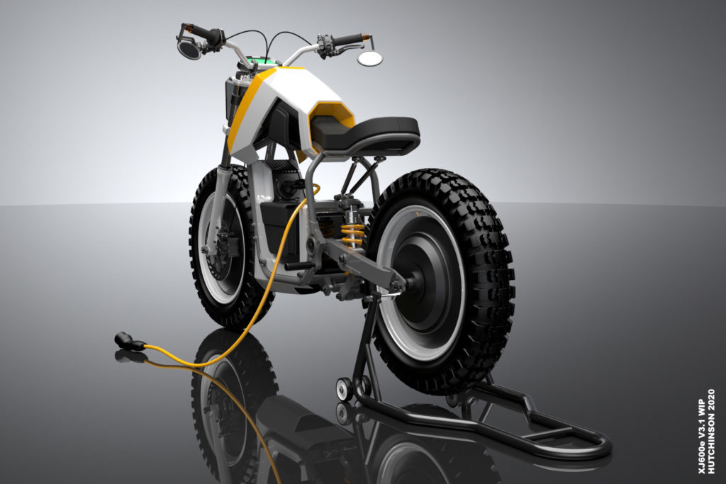 The XJ600e project is part of a design study about sustainable electric two wheeled vehicles.