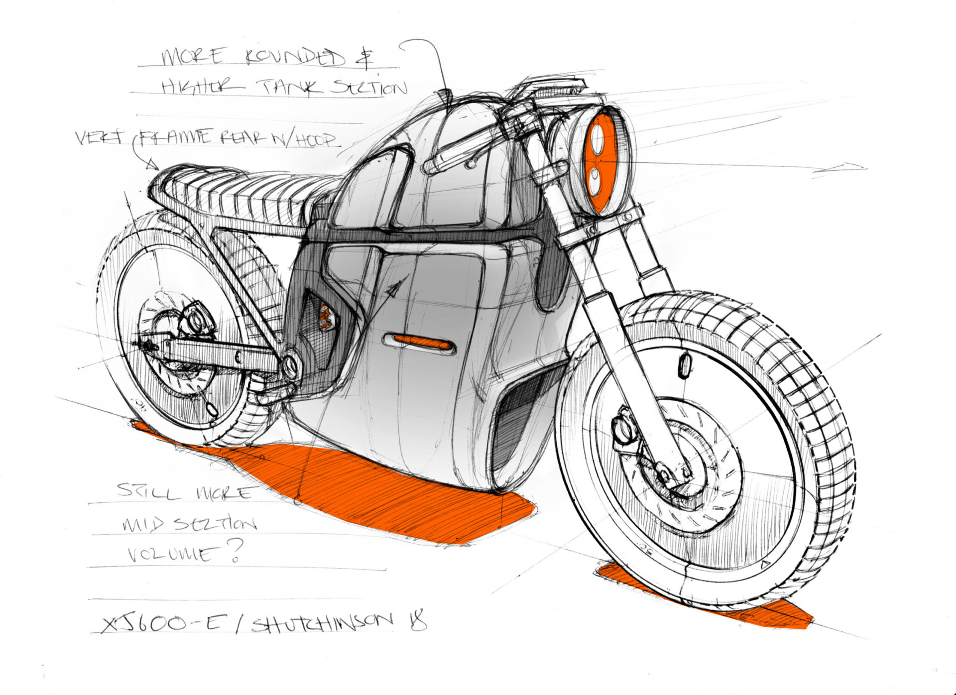 The XJ600e project is part of a design study about sustainable electric two wheeled vehicles.