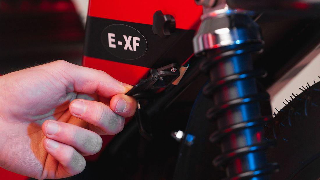 The model has many features reminiscing of the earlier moped models. The tubular frame is the main component of the E-XF model, made from steel and has a split beam.