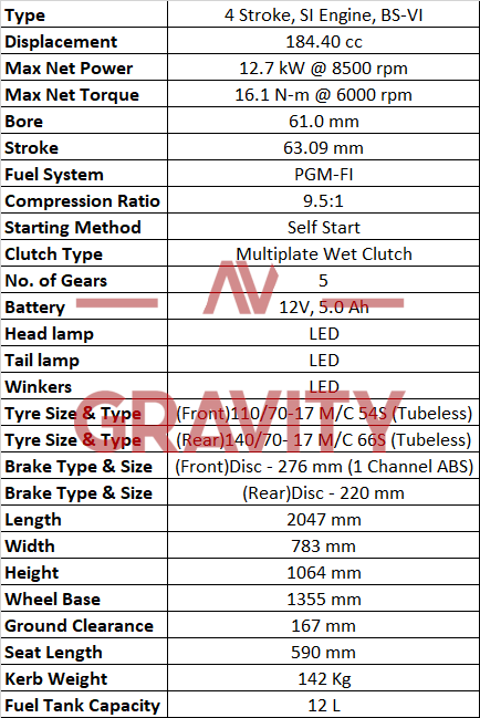 We don’t see any change in the structure it comes with 184.40cc motor which calibrates 17.03hp( 12.7 kW)@8500rpm and 16.1Nm @6000rpm torque with bore stroke 61*63.09mm. The engine comes fitted with a HET engine that produces fierce power. With the best-in-class mid-range torque