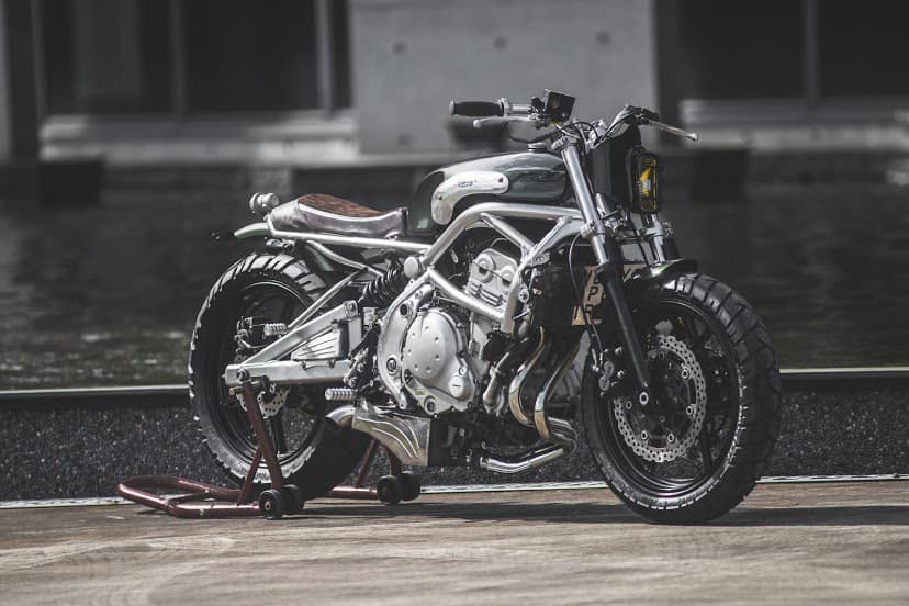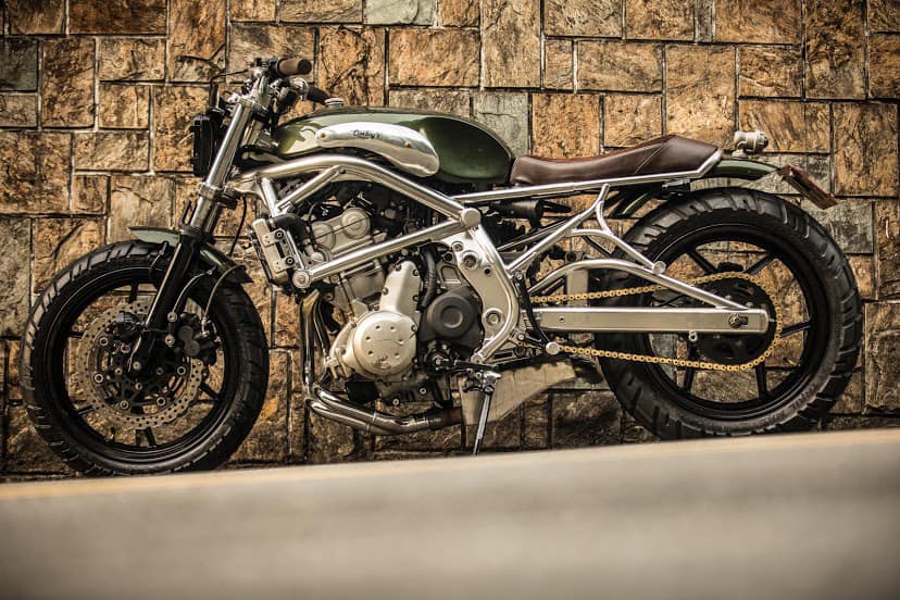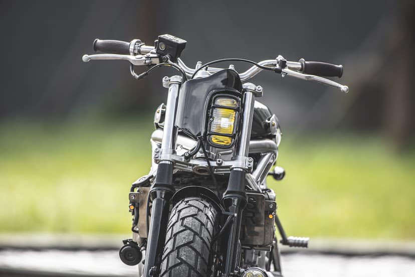 Further, to enhance the retro, the custom gets vertical asymmetrical headlight while the rear comes complemented by a small round tail light sits on the rear fender.