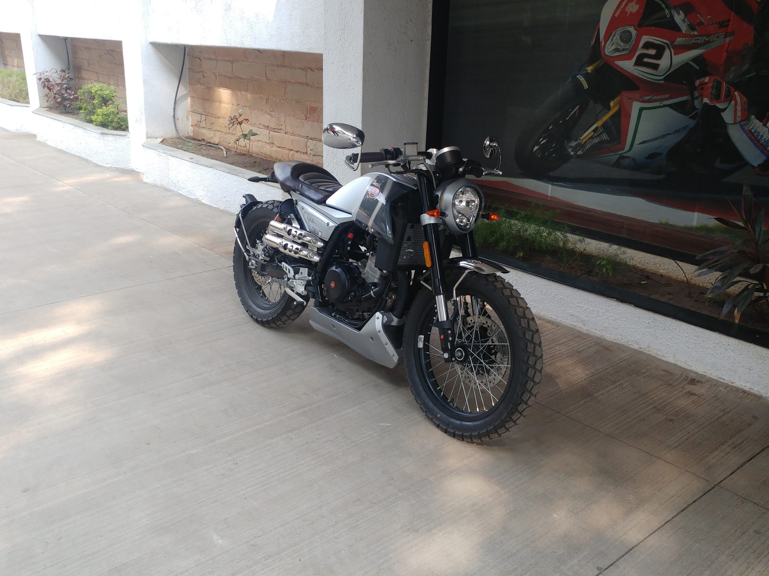 Flat handle makes the riders position bit lean and sportier.Components are grandeur and the bike is available in two colors silver and black.Well i got to test the Silver.Exhaust note is typical Italian which is little muffled yet is enjoyable to ears.During my test ride the bike gathered a lot of attraction as the bike has lot of character on the road and does look different.