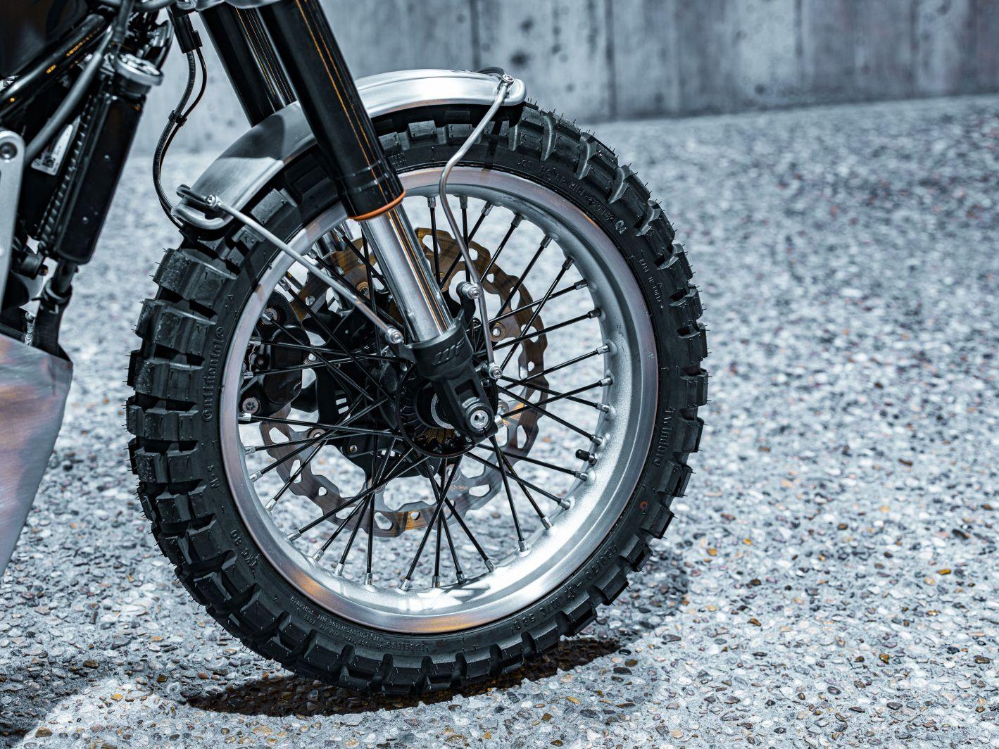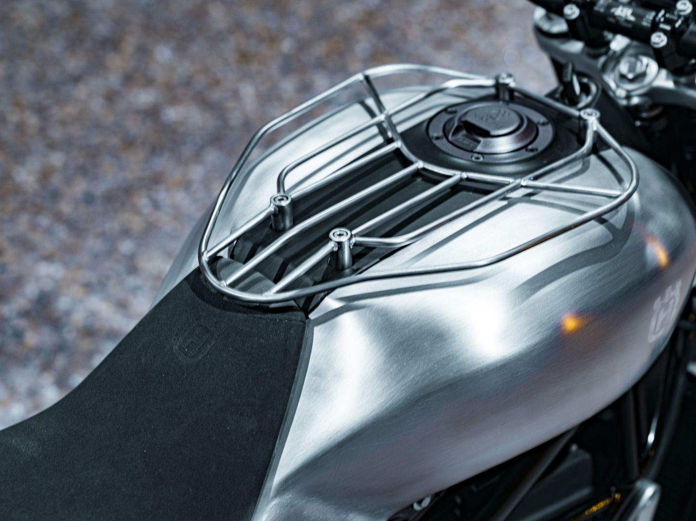 A bespoke aluminium front fender was also fabricated and brushed, displaying the polished Husqvarna logo.