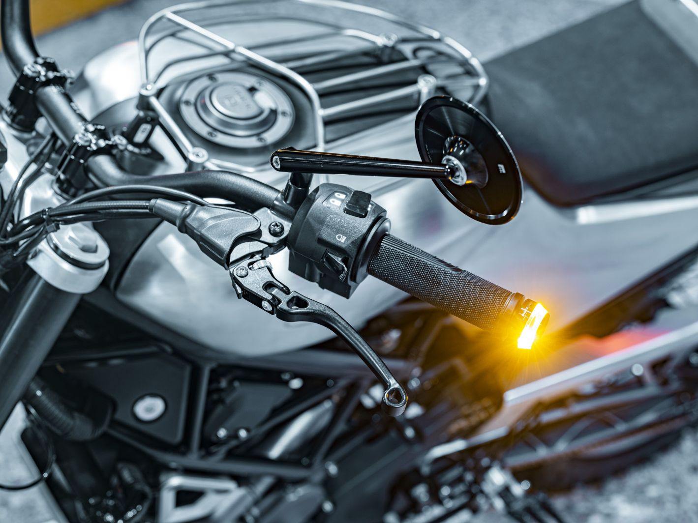 Further, we installed folding peg mounts and new stainless pivoting bear trap pegs, and the rims come with new Continental Twinduro tires. Finally, we installed Motogadget M.blaze turn signals and mounted Motogadget m. View Classic Mirrors.