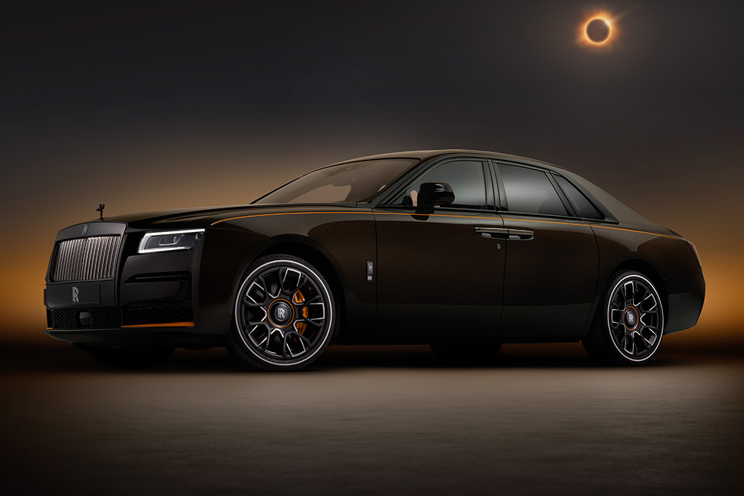 - Interior Design: Inside, the Black Badge Ghost Ékleipsis features bi-coloured seats with unique perforated artwork consisting of over 200,000 individual perforations. Mandarin upholstery piping complements the black leather interior. Bespoke illuminated tread-plates and pop-out umbrellas with Mandarin accents are also included. The illuminated fascia boasts 1,846 laser-etched ‘stars,’ requiring over 100 hours of expert craftsmanship.
