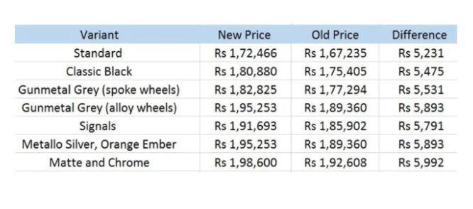 Every variant has experienced a different amount of hike in the price. With the highest promenade of Rs 5,992, the Matte and Chrome variants are standing firm in the market.