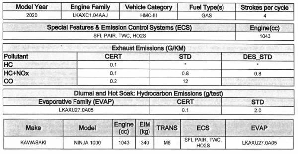 But that is not going to happen as we compare the  2019 model Ninja1000 CARB with the 2020 model CARB.