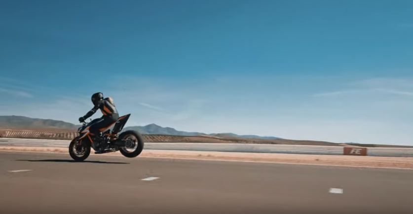 In this teaser, we see the KTM 1290 Super Duke R being tested on the track and the rider provides his feedback to the concerned person.