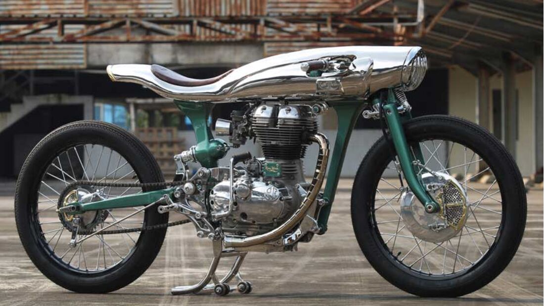 We’re taking a closer look at the custom model for this: Andika Pratama from Kromworks takes over only the blissful long-stroke single of British construction and Indian production. The base model is Royal Enfield Bullet 500.
