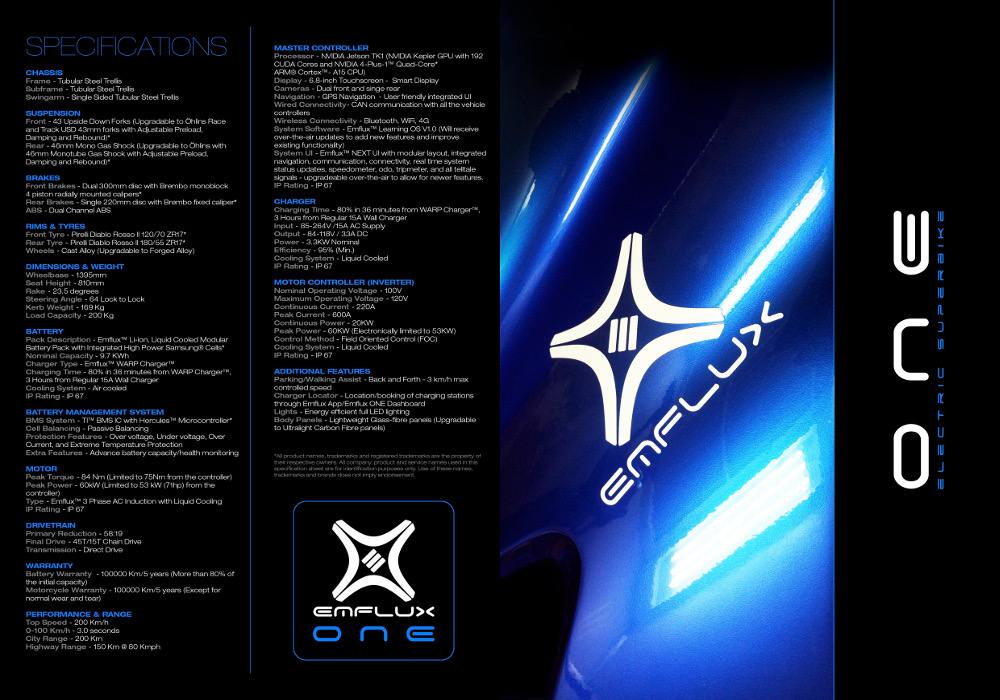 The pre-orders for the Emflux One are expected to  start in July 2018, with the first deliveries to begin in April 2019.Priced between INR 5 – 6 Lakhs. Purchases of the Emflux One will be completely online through digital payment methods.Emflux One