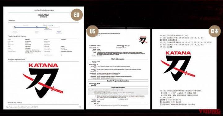 Here is the document of the application. The trademark is the same as the logo, which is attached to the side cover of KATANA, and the type that “KATANA” has no character in Japan and Europe has also been applied. Is it planning to develop goods sales in Japan and the United States and Europe along with the vehicle?
