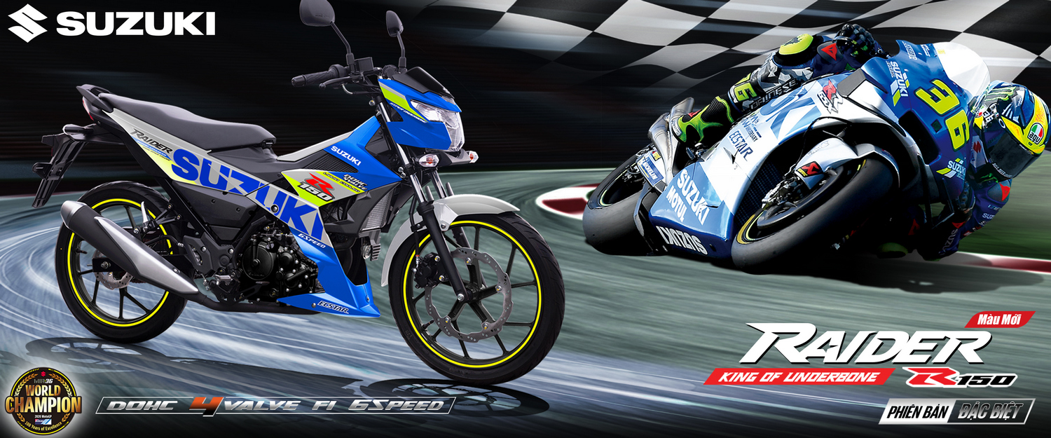Raider R150 possesses outstanding technology and utility with 150cc, DOHC, four strokes, four-engine block. Valve, 6-speed, 18.5 hp and liquid-cooled motor for powerful riding and optimum performance.