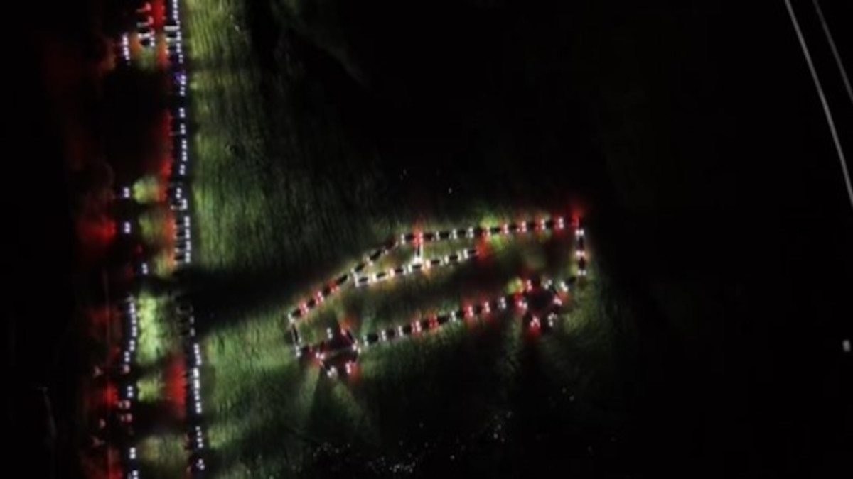 Is this the biggest Tesla light show ever? 👀 Tesla Takeover is starting off with an epic Cybertruck outline show pic.twitter.com/X8xVNmARU7