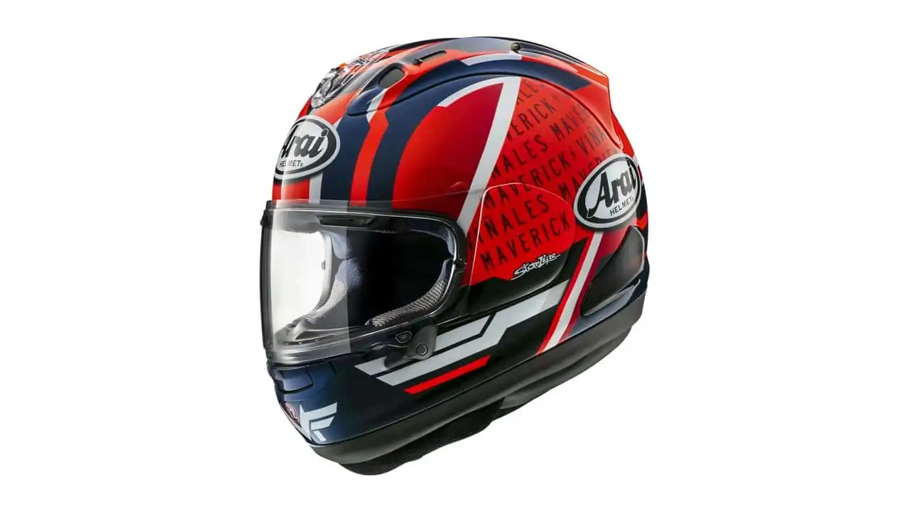 As a Maverick Viñales fan, you must be excited about the upcoming release of the RX-7X Maverick GP5 helmet from Arai. This new helmet is scheduled for launch in early September 2023. It features a red, white, and blue design with Viñales’ name and a big “12” at the back, which makes it a replica of the design he uses in his races.