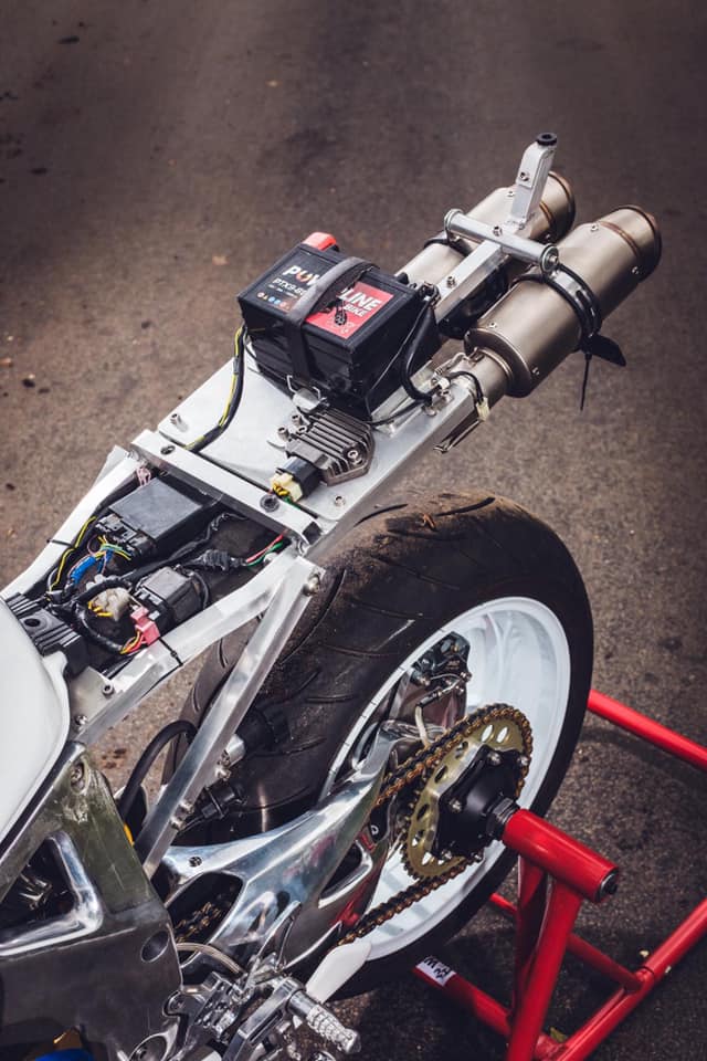 If you see for yourself apart from the swingarm, there is nothing on this custom CBR900 we could think of getting closer to the original NSR500.