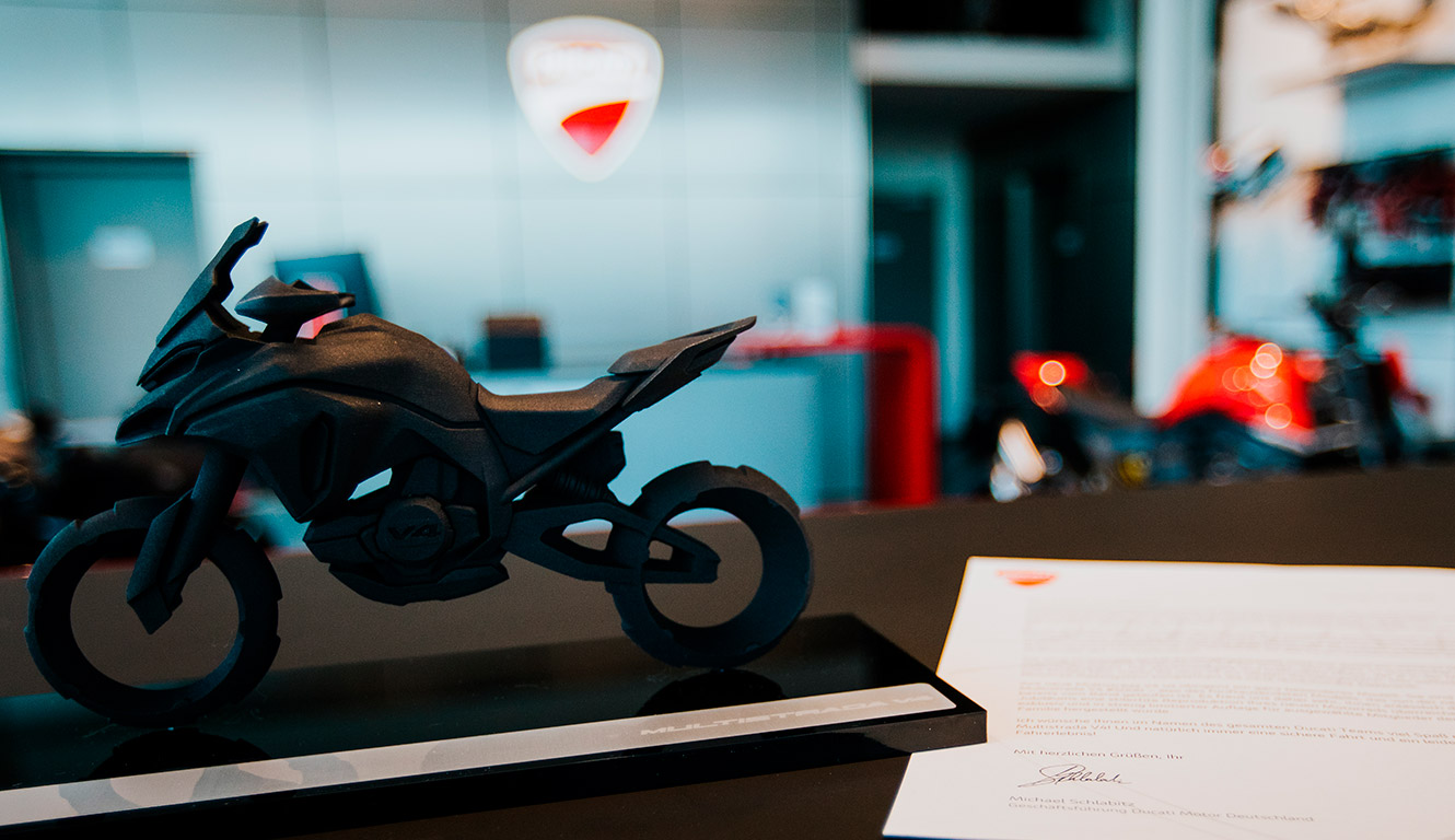 He received a sculptural reproduction of the Multistrada V4. And a personal letter was certifying the motorcycle’s serial number.