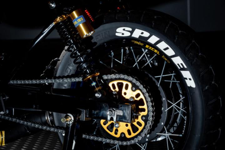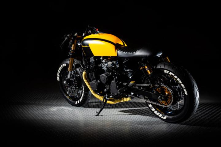 To keep the CB DNA intact, Krzysztof used multiple components from the Honda CB550F. The front comes loan from the Suzuki GSXR600. Further to improve the suspension duties, we see the Ohlins on the rear.