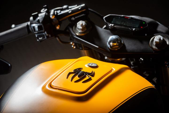 The two colour scheme paint job with black and yellow looks stunning. It is admirable to see the entire structure with the yellow colour fuel tank. Plus the black spider on the tank cap adds more valve.