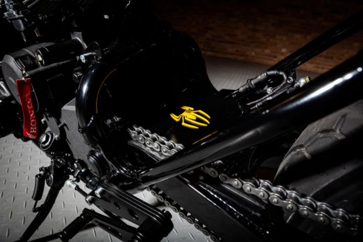 The two colour scheme paint job with black and yellow looks stunning. It is admirable to see the entire structure with the yellow colour fuel tank. Plus the black spider on the tank cap adds more valve.