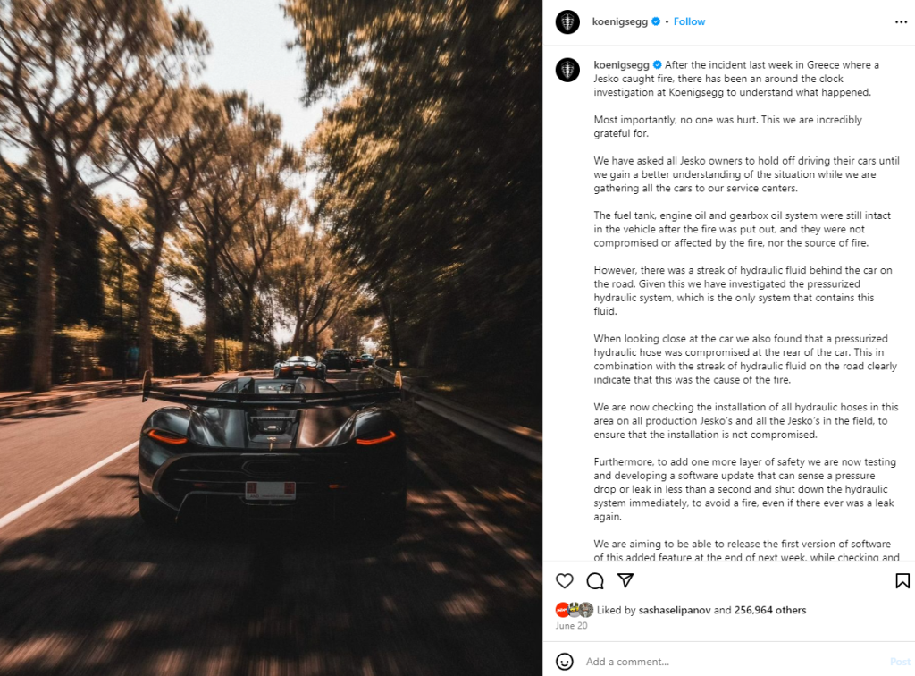 Koenigsegg, being the superhero of the hypercar world, didn’t just sit back and watch. Nope, they rolled up their sleeves, put on their detective hats, and started an investigation that would make Sherlock Holmes proud. CEO Christian von Koenigsegg himself broke the news on Instagram, and the plot thickened from there.