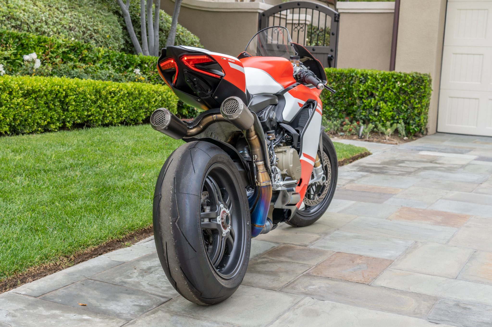 Equipment includes Öhlins adjustable suspension components. An Akrapovič titanium race exhaust system, the Ducati Data Analyser+ GPS. A six-axis Bosch inertial measurement unit (IMU).And a ride modes and rider aids suite.
