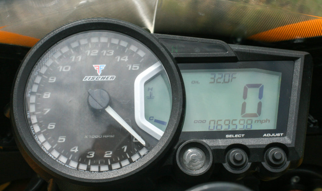 Within the last six months, the bike received a new air filter, new lithium battery, brake fluid flush, coolant flush. New shifter seal, new chain, new vacuum fuel petcock, new vacuum fuel pump, new fuel. And vacuum lines, oil/filter change, battery tender plug, and a carb rebuild/sync.