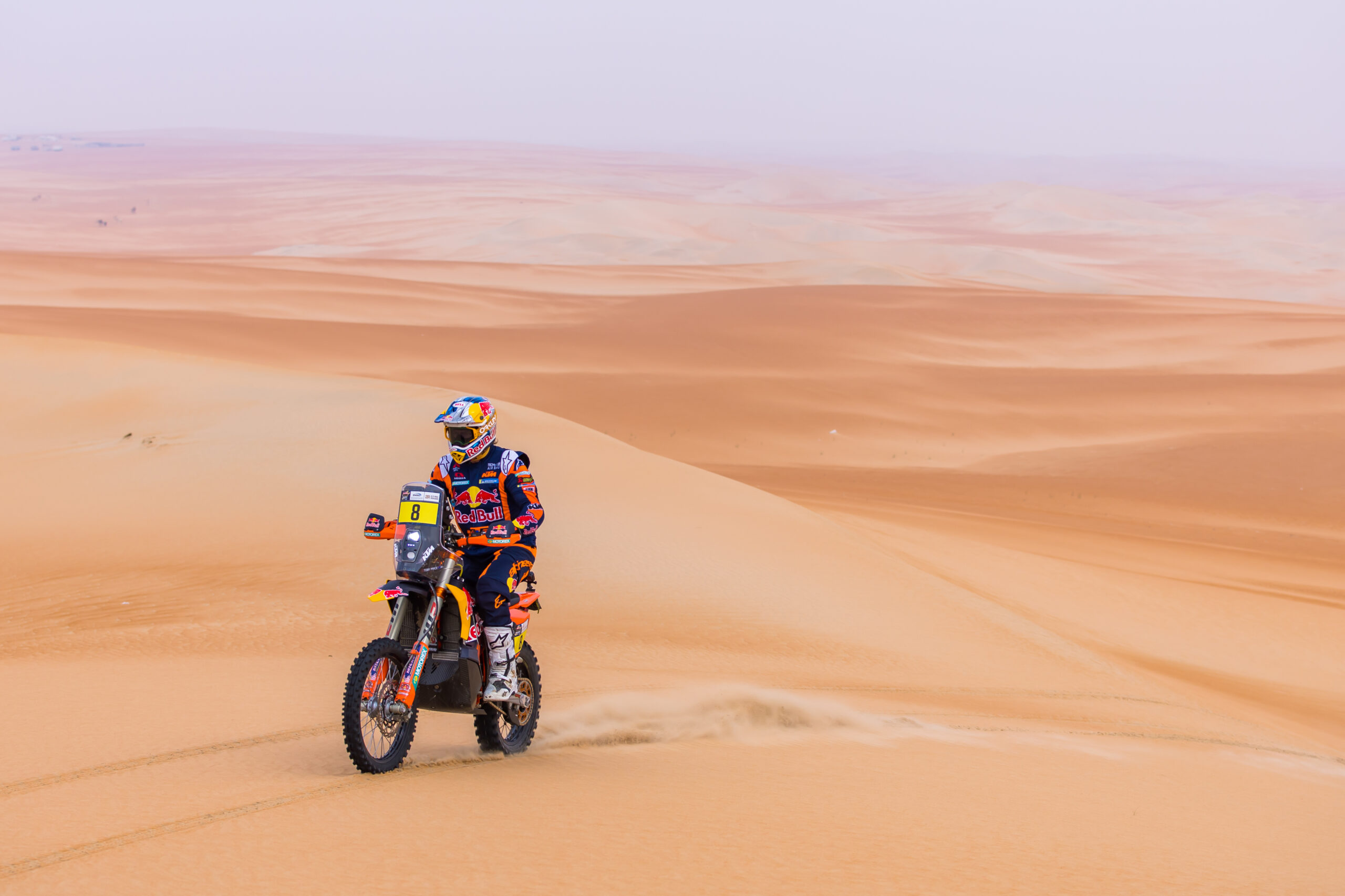 Red Bull KTM Factory Racing’s Toby Price endured a challenging day in the desert today, opening the long, 308-kilometre timed special on stage four of the Abu Dhabi Desert Challenge. However, despite battling a difficult day, he remained focused and gave his all to secure a solid seventh-place result. Price now lies sixth overall in the provisional rally standings.