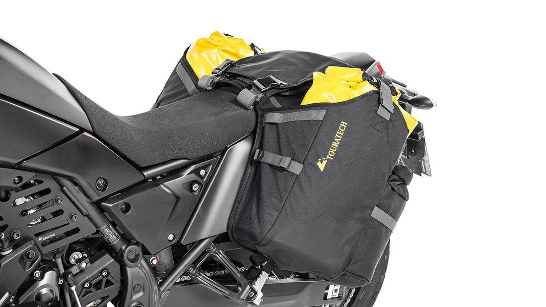 And it does not require a holder and comes designed for rollable luggage bags. You can attach luggage to any bike and not the Yamaha Tenere in particular.