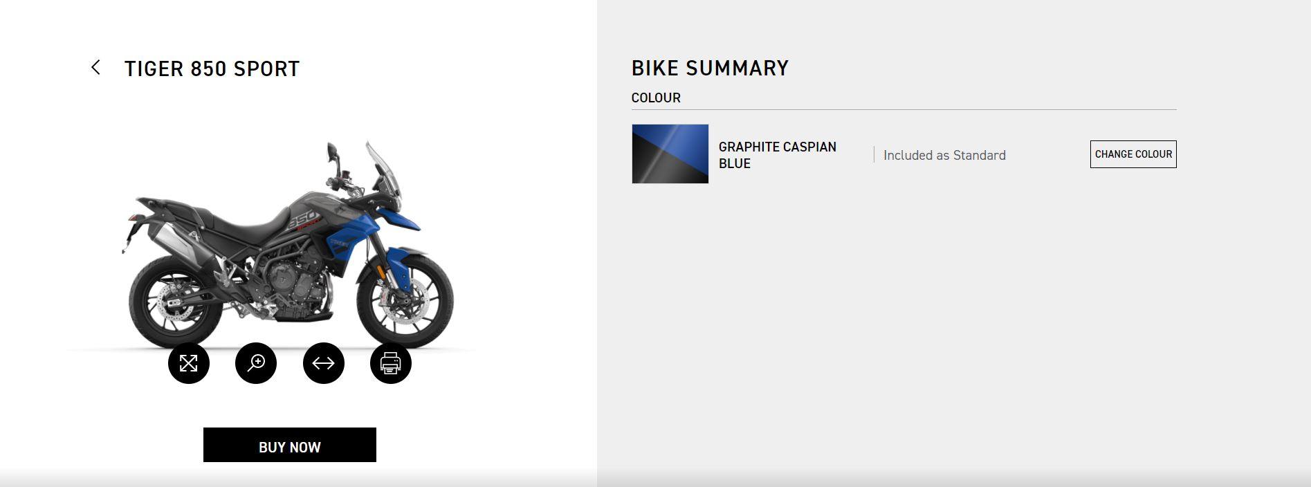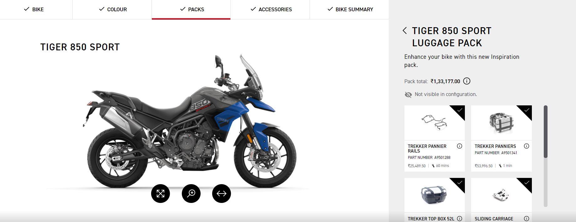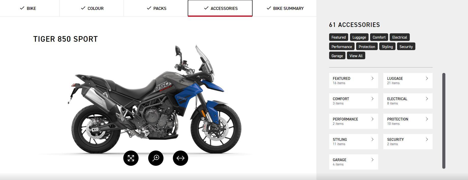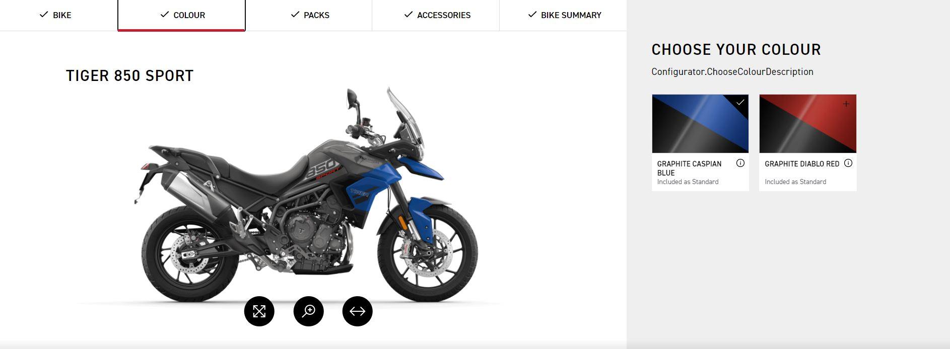 - Select the bike( In this case we selected the Tiger 850 Sport).